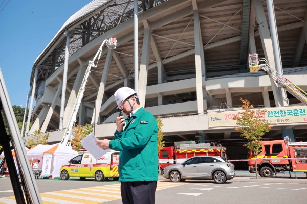 이 시장은 미르스타디움 현장에 도착해 훈련을 총괄 지휘하면서 재난안전통신망을 사용해 “아직도 미쳐 빠져나오지 못하는 관람객이 많은 것 같다.