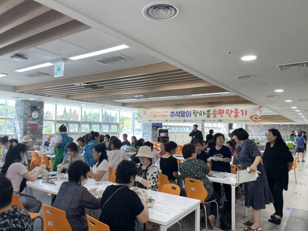 송문영 센터장은 “작년에 이어 올해도 많은 분이 송편 만들기에 참여하셔서 감사드린다 오늘 이 시간 송편을 만들면서 서로 교류도 하고 재미있는 이야기도 나누면서 지역주민 간 친목을 다지는 시간이 되길 바란다”며 인사말을 전했다.