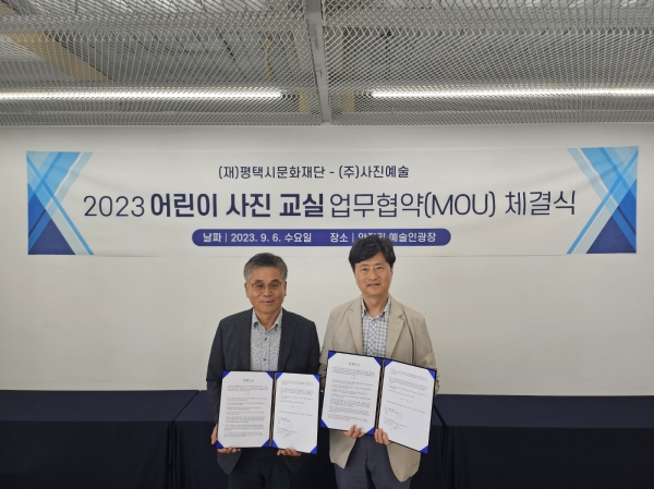 [금요저널] 평택시문화재단은 지난 6일 오전 안정리 예술인광장에서 ㈜사진예술 플러스와 함께 어린이들의 예술적 창의성을 함양할 수 있도록 ‘어린이 사진 교실’의 지원을 위해 업무협약을 체결했다고 밝혔다.