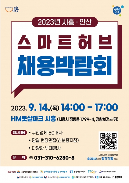 [금요저널] 시흥시는 오는 14일 오후 2시부터 오후 5시까지 정왕동에 있는 HM풋살파크 시흥에서 ‘2023년 시흥·안산 스마트허브 채용박람회’를 개최한다고 밝혔다.