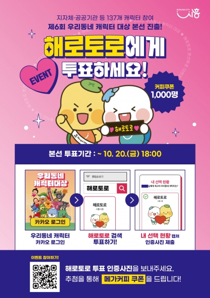 9월 11일부터 10월 20일까지 해로토로에 투표한 후 네이버폼을 통해 투표 인증 사진을 제출하면 참여자 추첨을 통해 1,000명에게 커피 기프티콘을 증정한다.