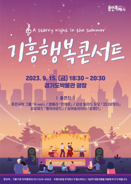 [금요저널] 용인특례시 기흥구가 오는 15일 상갈동 경기도박물관 광장에서 기흥행복콘서트를 개최한다고 12일 밝혔다.