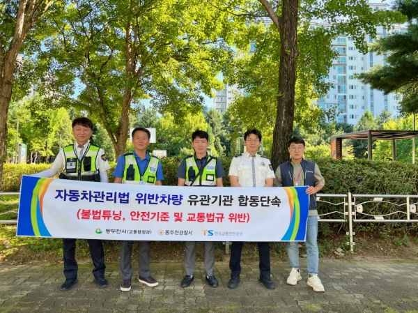 [금요저널] 동두천시는 지난 7일 동두천동 산업단지 일대에서 한국교통안전공단 경기북부본부, 동두천경찰서와 함께 불법 개조 및 안전기준 위반 자동차 합동단속을 실시했다고 밝혔다.