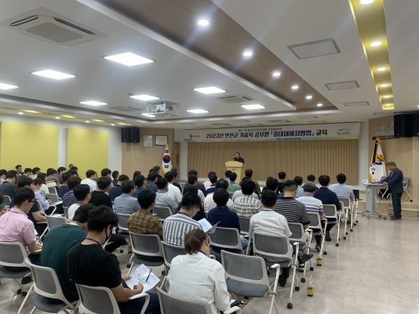 [금요저널] 연천군은 지난 12일 연천군청 대회의실에서 기술직 공무원 및 공사담당 공무원 100여명이 참석한 가운데, 중대재해처벌법 교육을 진행했다.