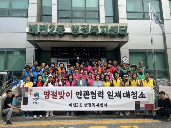 [금요저널] 평택시 비전2동에서는 다가오는 민족 대명절 추석을 맞아 지난 12일 관내 취약지역을 대상으로 민관협력 대청소를 했다고 밝혔다.