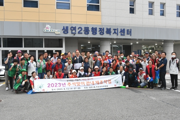[금요저널] 동두천시 생연2동 행정복지센터는 지난 13일 추석을 맞이해 사회단체원 및 직원 80여명이 참여한 가운데 관내 환경정화 및 제초작업을 실시했다고 밝혔다.