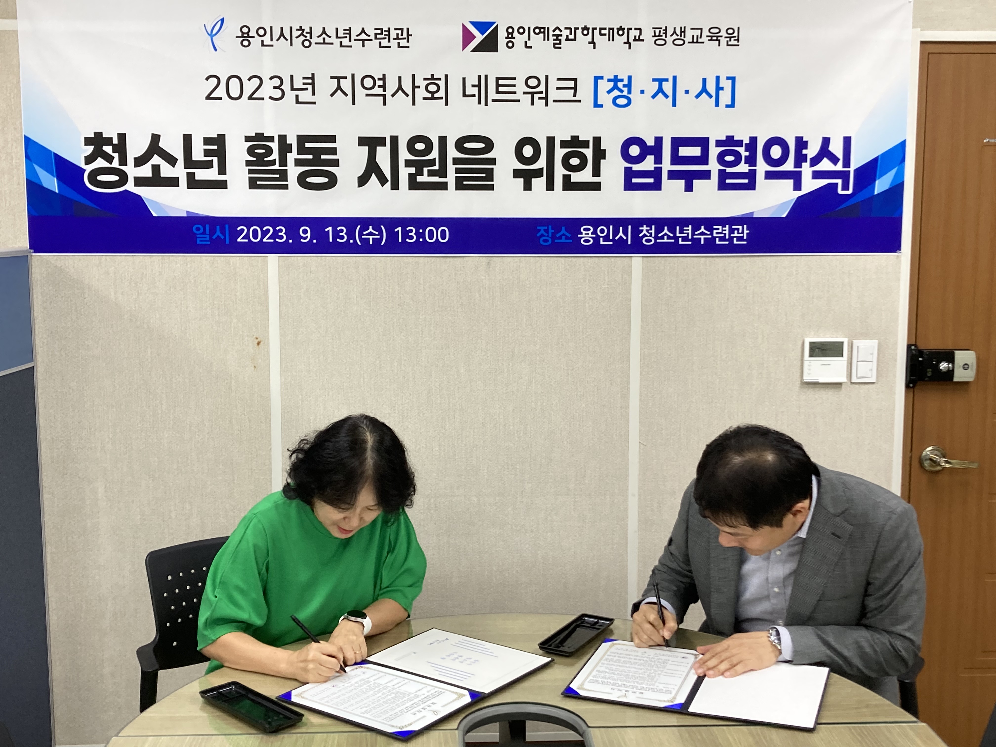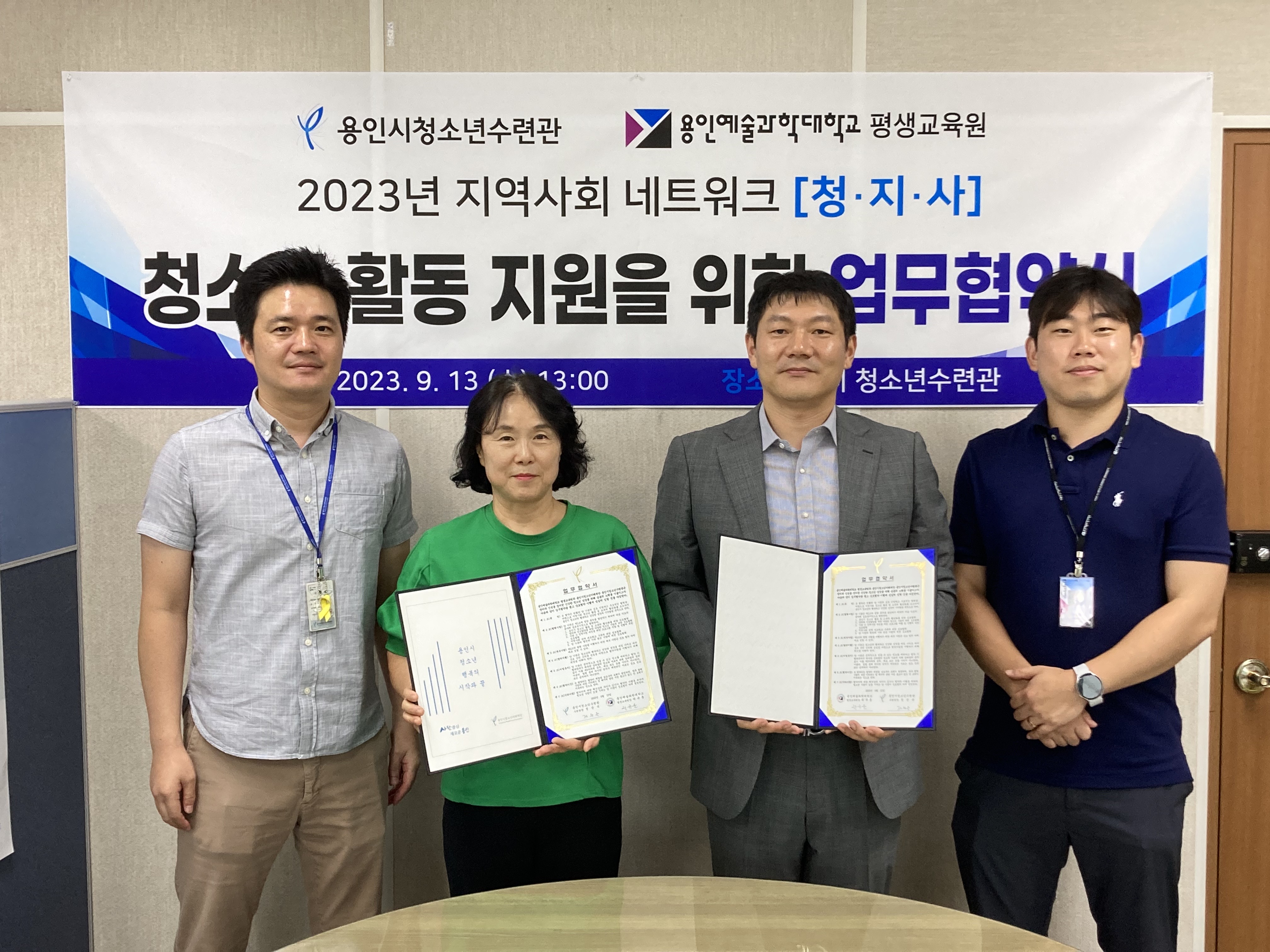용인시청소년수련관과 용인예술과학대학교 평생교육원은 청소년 활동에 대한 안정적인 지원과 지속적인 교류를 통해 용인시 청소년의 균형 있는 성장을 함께 지원하기로 했다.