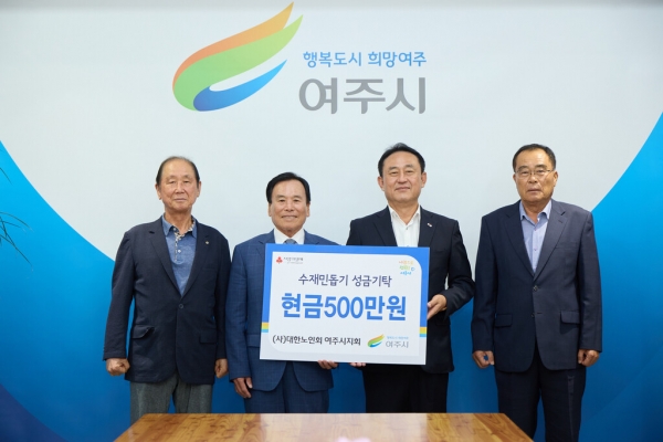 이에 이충우 여주시장은 “사)대한노인회 여주시지회가 이웃돕기 실천에 항상 모범을 보여주시며 지역사회에 선한 영향력을 끼쳐주시는 데 매우 감사드린다. 갑작스러운 호우로 인해 힘들었던 주민분들에게 큰 힘이 될 것이다 소중한 성금으로 취약계층 주민들의 생활 안정을 위해 사용하겠다”며 전했다.