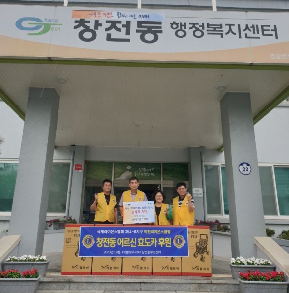 [금요저널] 이천라이온스클럽은 13일 창전동행정복지센터를 방문해 실버카 5대를 후원했다.