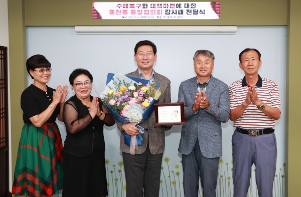 이 시장은 “시장으로서 당연히 할 일을 했을 뿐인데 이렇게 감사패까지 주시니 정말 고맙다”며 “올해는 다행히 비가 덜 왔지만 내년 집중호우를 대비해 주민 안전을 지키는 데 최선을 다하겠다”고 말했다.