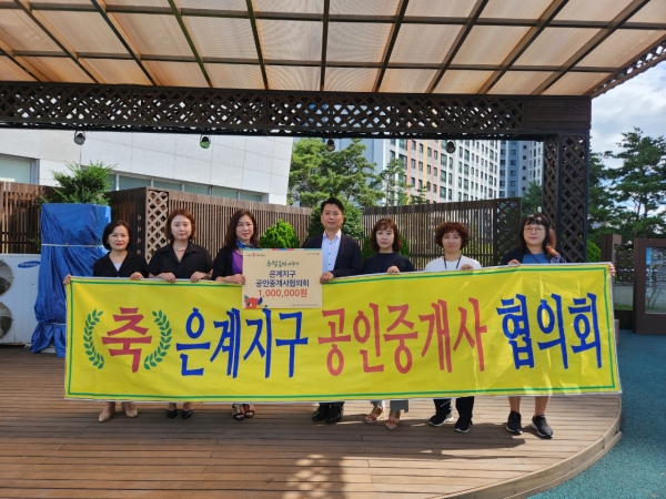 [금요저널] 은계지구 공인중개사협의회가 지난 14일 은행동 행정복지센터를 찾아 추석맞이 온정 후원금 100만원을 전달했다.