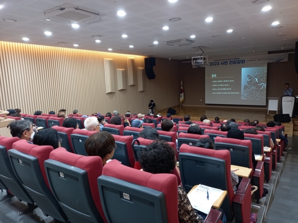 의정부정보도서관 시네마천국에서 진행된 이날 행사는 만성질환의 예방 및 관리를 주제로 보건소와 의정부을지대학교병원이 함께 실시하는 ‘2023 시민 건강강좌’의 일환이다.