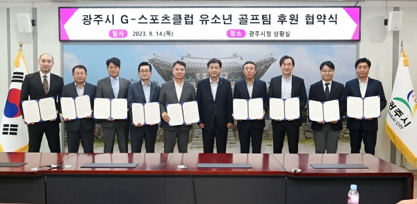이날 협약식에는 방세환 시장과 이철희 광주시체육회장 직무대행, 관내 8개 골프클럽 대표와 G-스포츠클럽 유소년 골프팀 지도자 및 선수 등 30여명이 참석했다.