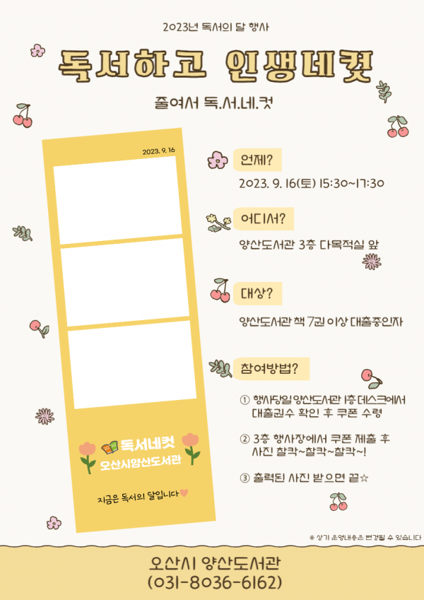 한현 오산시 도서관장은 “독서의 달을 맞이한 양산도서관 다채로운 행사로 지역주민들이 책과 친해지고 독서의 즐거움을 발견하길 바란다”고 전했다.