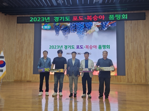 ‘경기도포도품평회’는 경기도 과일의 우수성을 홍보해 유통 및 소비를 활성화하기 위해 마련된 행사로 이날 행사에는 캠벨얼리, 거봉, 샤인머스캣 등 3종류 42점의 포도가 출품돼 당도, 착색, 식미 등 엄격한 기준으로 수상작을 선정했다.