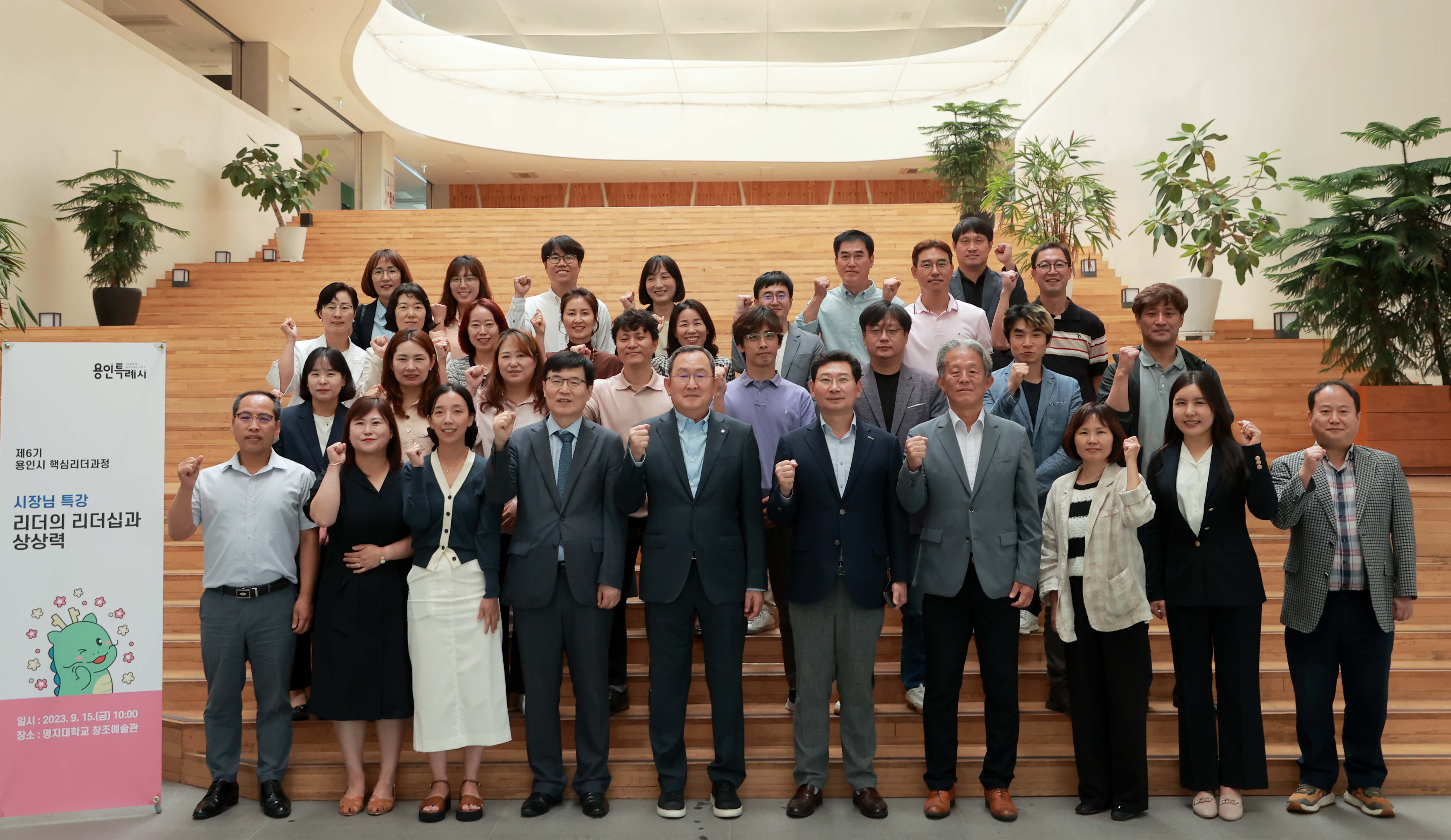 이상일 용인특례시장이 15일 명지대학교 창조관에서 제6기 용인시 핵심 리더 과정 교육생 27명을 대상으로 ‘리더의 리더십과 상상력’이란 주제의 강연을 했다.