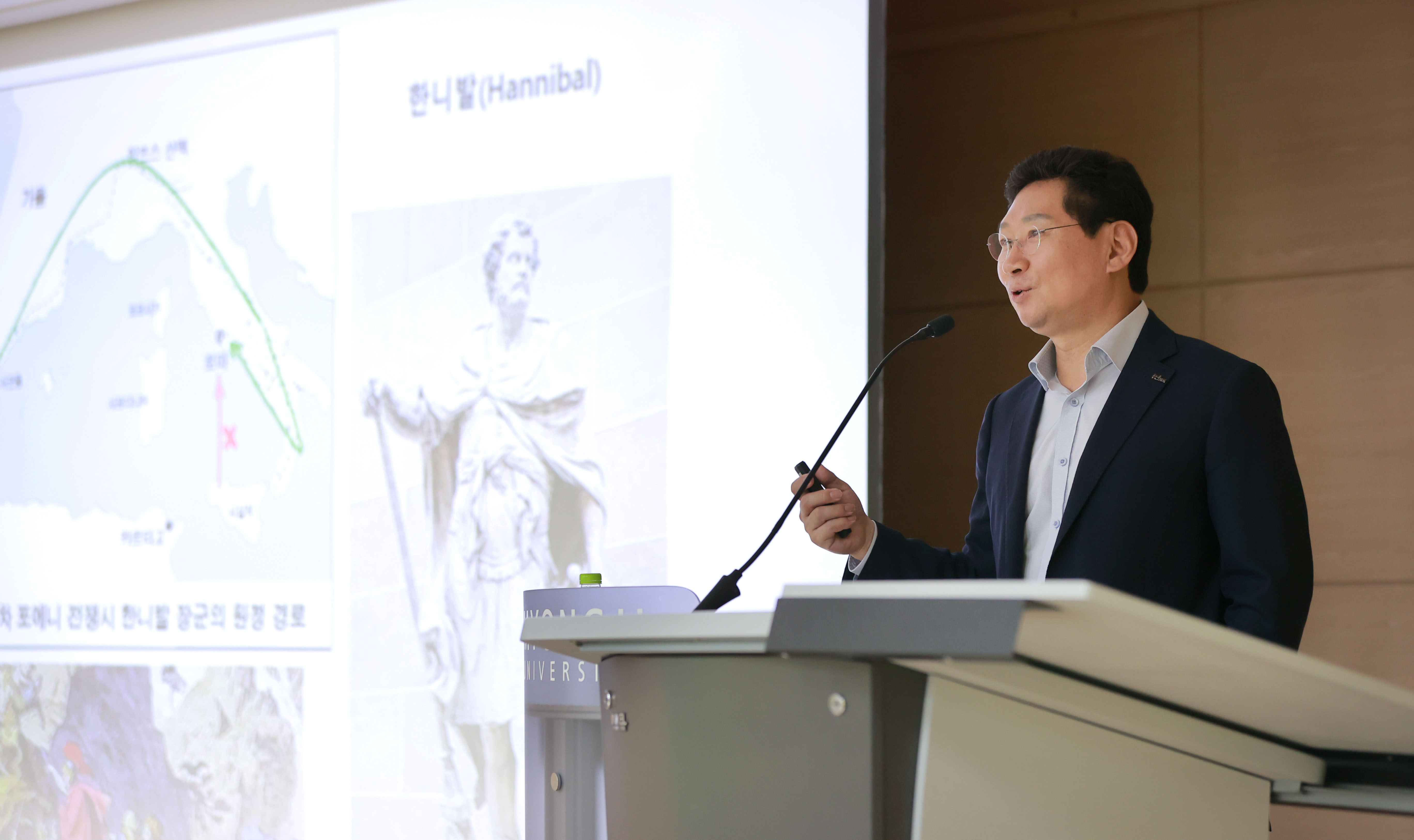 이 시장은 강의에 앞서 “저 역시도 시장으로서 상상력을 발휘하기 위해 이런저런 생각을 많이 하고 있다”며 “삼성전자 국가산단 유치의 경우도 용인을 세계적 반도체 도시로 만들기 위한 저의 상상에서 비롯된 측면이 있다”라고 운을 띄웠다.
