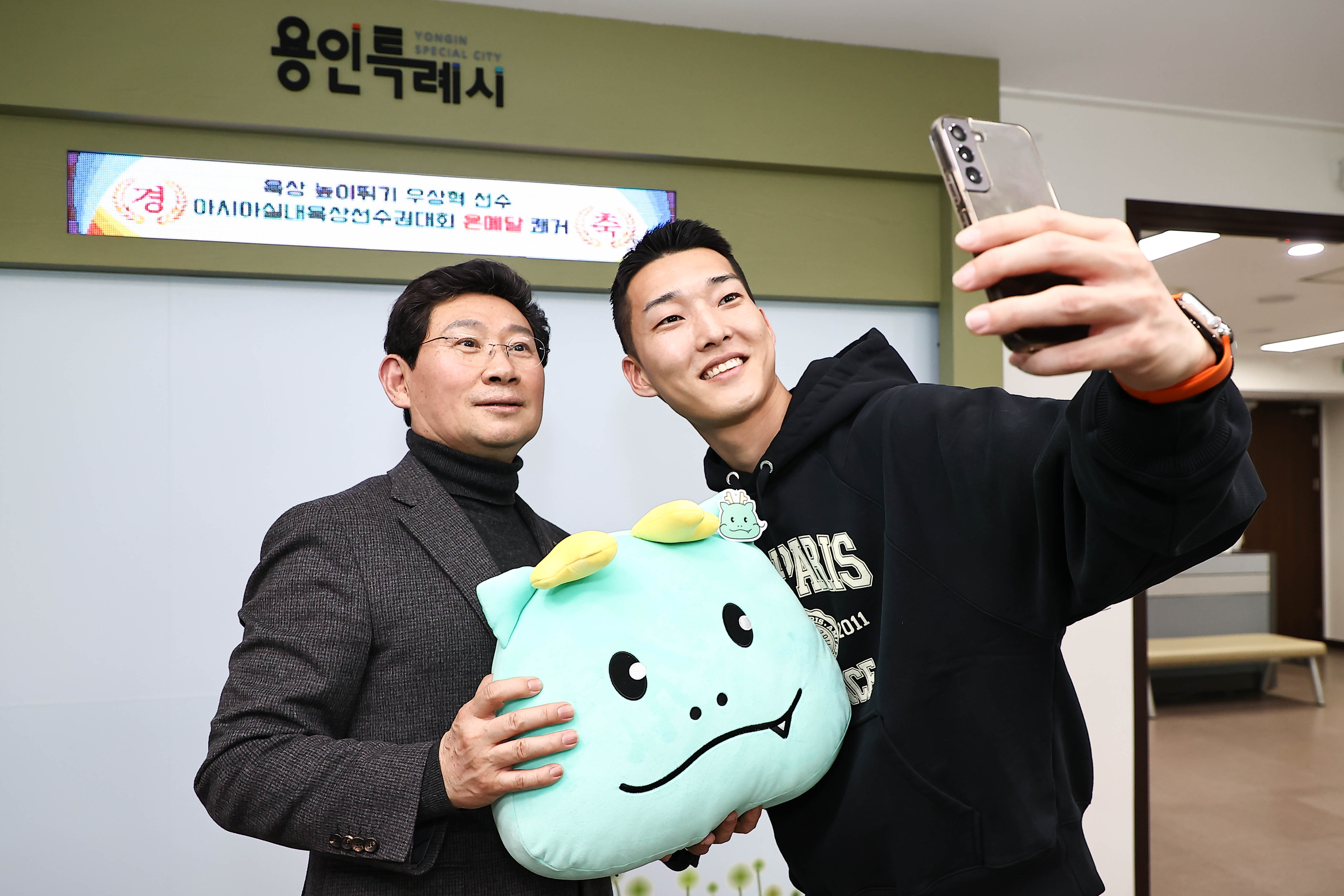 이 시장은 "우상혁 선수는 용인의 자랑이고, 대한민국의 보배가 아닐 수 없다"며 "컨디션 조절을 잘해서 곧 열릴 항저우 아시안게임에서도 좋은 성과를 내주기 바란다"고 말했다.