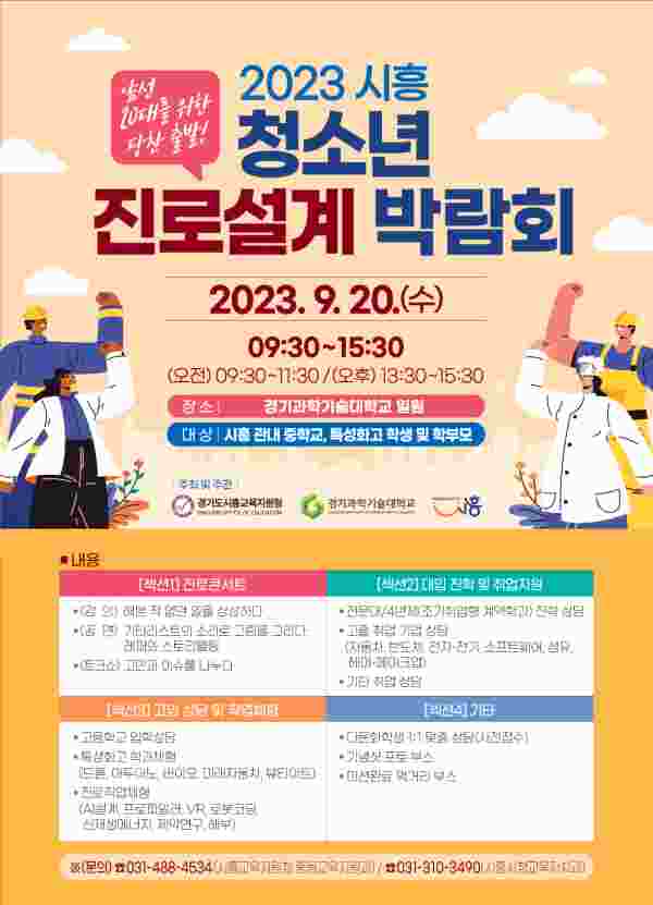 [금요저널] 시흥시는 ‘청소년 진로 설계 박람회’를 오는 20일 경기과학기술대학교 일원에서 오전 9시 30분부터 오후 3시 30분까지 개최한다고 밝혔다.