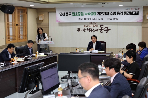 [금요저널] 인천 동구는 지난 15일 ‘인천 동구 탄소중립 녹색성장 기본계획 수립 용역’ 중간보고회를 개최했다.