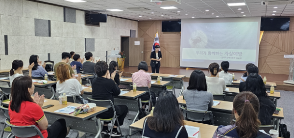 한국자살예방협회 교육위원장인 권순정 강사가 우리나라 자살 현황과 자살위험자의 다양한 심리를 이해하는 이론교육, 자살위기 사례개입 모의훈련 등을 내용으로 교육을 진행했다.