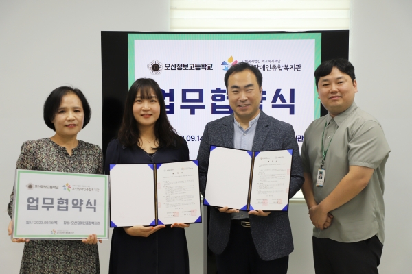 [금요저널] 오산장애인종합복지관은 9월 14일 오산시에 위치한 오산정보고등학교와 오산시 장애 청소년의 직업 역량 강화를 위한 업무협약을 체결했다고 밝혔다.