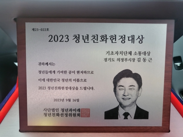 의정부시, 2023 청년친화헌정대상 ‘소통대상’ 수상