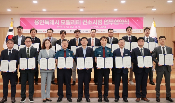 [금요저널] 용인특례시는 18일 시청 비전홀에서 첨단 모빌리티 시범사업 추진을 위해 시를 비롯한 산·관·학·연 18개 기관이 ‘모빌리티 컨소시엄’을 구성하고 업무 협약을 맺었다.
