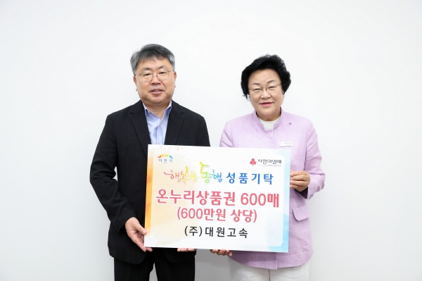 18일에 진행된 기탁식에는 ㈜대원고속 허덕행 기획조정실장이 참석한 가운데 온누리상품권을 전달했다.