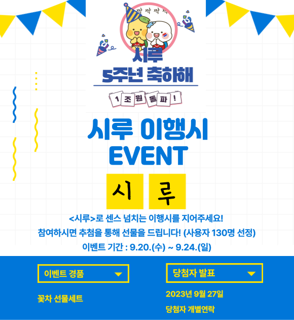 이번 이벤트는 시루 5주년을 맞이하기까지 시루 활성화에 함께해 준 일반 시민과 가맹점주를 대상으로 진행된다.