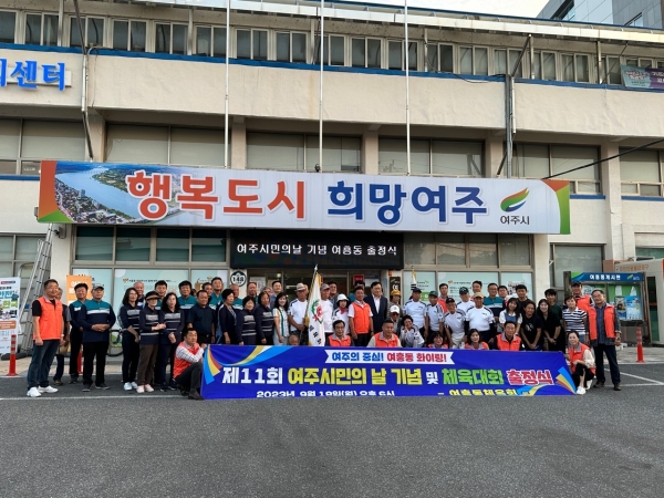 [금요저널] 여흥동은 지난 18일 여흥동 체육회, 통장협의회, 기관 단체장, 출전 선수단 등 100여명이 참여한 가운데 제11회 여주시민의 날 기념 체육대회 출정식을 여흥동행정복지센터에서 실시했다.