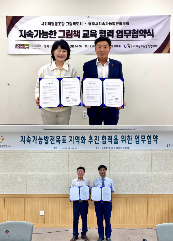 이번 협약은 지속가능발전목표 지역화 추진 및 지속가능한 그림책 교육 협력을 위한 것으로 광주시 지속가능발전협의회는 그림책 도시와 지속가능발전목표와 연계한 그림책 콘텐츠 개발과 공유 그림책 문화 확산을 위한 협력사업 추진 전문 인력 양성을 위한 역량 강화 교육 지원을 위해 상호 협력키로 했다.