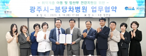 [금요저널] 광주시는 지난 19일 분당차병원 및 분당차여성병원과 취약계층 아동과 임산부·갱년기 여성의 건강서비스 제공을 위한 업무협약을 체결했다.