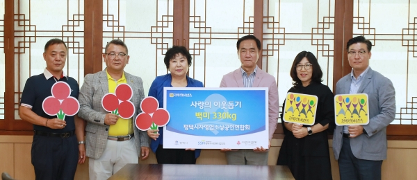 [금요저널] 평택시자영업소상공인연합회는 지난 18일 평택시청 대외협력실에서 평택행복나눔본부에 사랑의 쌀 나눔 백미 330㎏을 전달했다.