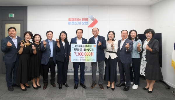 이 후원금은 오산시 관내 지역아동센터 9개소, 오산시사회복지협의회에 전달돼 보호자의 보호를 받지 못해 사회·경제적 어려움이 큰 위기 청소년에게 생활비, 치료비, 학업 지원비로 쓰일 예정이다.