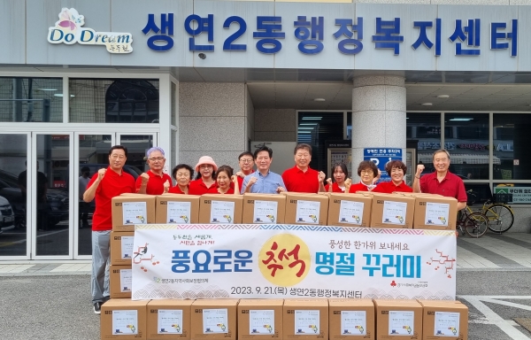 [금요저널] 동두천시 생연2동지역사회보장협의체는 지난 21일 추석 명절을 맞아 관내 저소득 소외계층의 소외감을 덜기 위한 ‘풍요로운 명절 꾸러미’ 나눔 행사를 추진했다고 밝혔다.