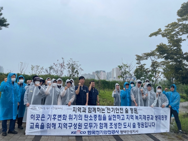 한국전기안전공사 평택안성지사 김선준 지사장은 “비가 내리는 와중에도 지역 구성원 모두와 전기안전 숲 정원을 정비하다 보니 지역사회에 좀 더 애정을 가지고 다가서는 계기가 됐다”며 “앞으로도 생활 속 전기안전의 상징으로 전기안전 숲 정원을 가꾸어 나가겠다”고 약속했다.
