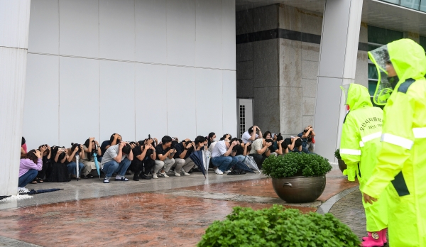 이날 진행된 지진 대피 훈련에는 청사 내 전 직원, 지역자율방재단, 시설 이용자 등 약 500명이 참석했다.