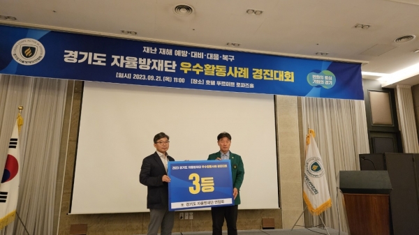 한편 대회에서 1위를 차지한 화성시와 2위 광명시, 그리고 3위 오산시는 경기도를 대표해 10월 중에 행정안전부 주관으로 개최될 전국 자율방재단 경진대회에 참석할 예정이다.