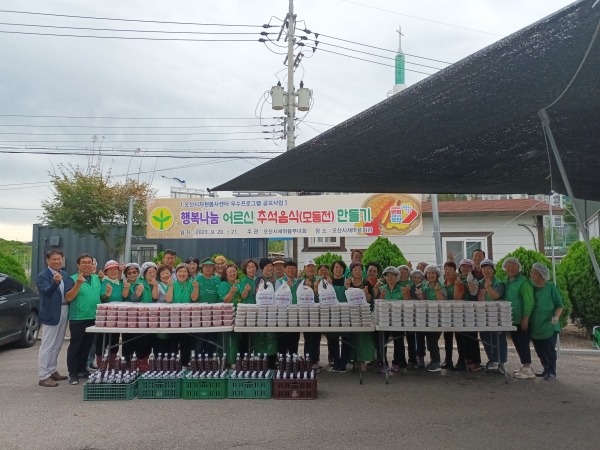 이번 행사에서는 오산시새마을부녀회원 60여명이 함께 모여 모둠전, 소고기뭇국, 겉절이김치, 수정과를 정성스럽게 조리해 소외계층 어르신 150가구에 전달했다.