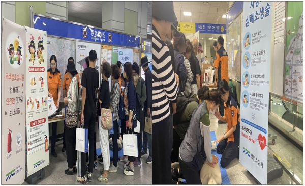 [금요저널] 용인소방서는 지난 21일 추석명절 대비 귀성객을 대상으로 지하철역사에서 영웅이와 함께하는 응급처치 교육 및 홍보 캠페인을 추진한다고 밝혔다.