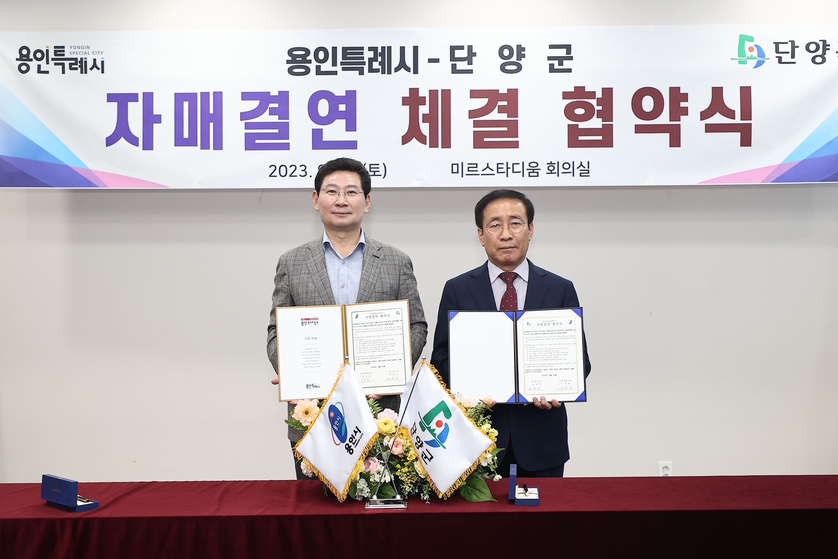 용인특례시(시장 이상일)가 23일 충청북도 단양군과 자매결연을 맺었다.