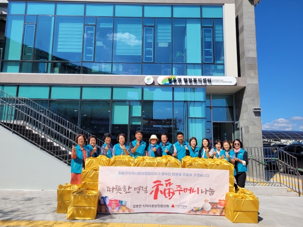[금요저널] 지난 22일 점동면 지역사회보장협의체에서는 명절을 맞이해 저소득층 계층에게 따뜻한 명절을 보내기 바라는 마음으로 ‘사랑의 복주머니’선물세트 80상자를 제작해 전달했다.