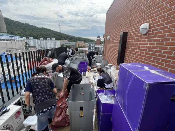 이에 동은 남동지역자활센터 커뮤니티케어사업단과 함께 2.5t 화물차 1대분의 쓰레기와 폐기물을 수거하고 내부 대청소와 정리수납을 진행했다.
