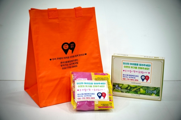 [금요저널] 인천 동구 화수2동 행정복지센터에서는 20일 주민이 체감하는 맞춤형 복지 실현을 위해 하반기 찾아가는 보건복지서비스 및 복지사각지대 발굴 사업을 알리는 쇼핑백 및 스티커를 제작, 적극 홍보에 나선다고 밝혔다.