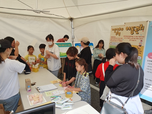 [금요저널] 부평구 아동참여위원회가 지난 23일 부평풍물대축제 행사장에서 아동권리 홍보 캠페인을 진행했다.