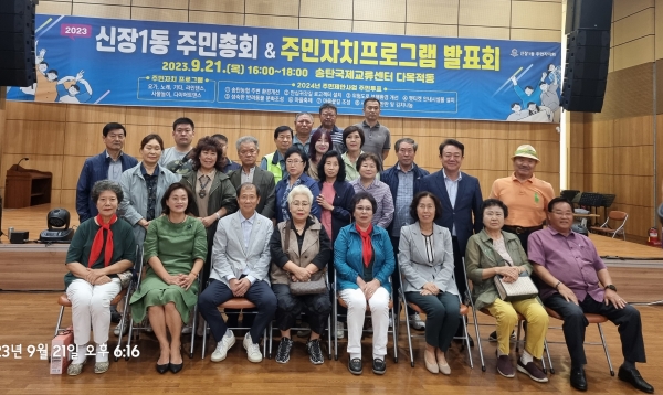 이날 주민총회는 노래, 기타 교실 등 6개 과목 수강생의 주민자치프로그램 발표회와 함께 진행됐으며 2023년 신장1동 주민자치회 운영 및 활동 보고 2024년 주민참여예산 제안사업 설명 및 투표 결과 발표순으로 진행됐다.