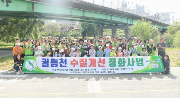 [금요저널] 오산시자연보호협의회가 지난 23일 오산천 지류천인 궐동천에서 수질정화 활동을 전개했다.