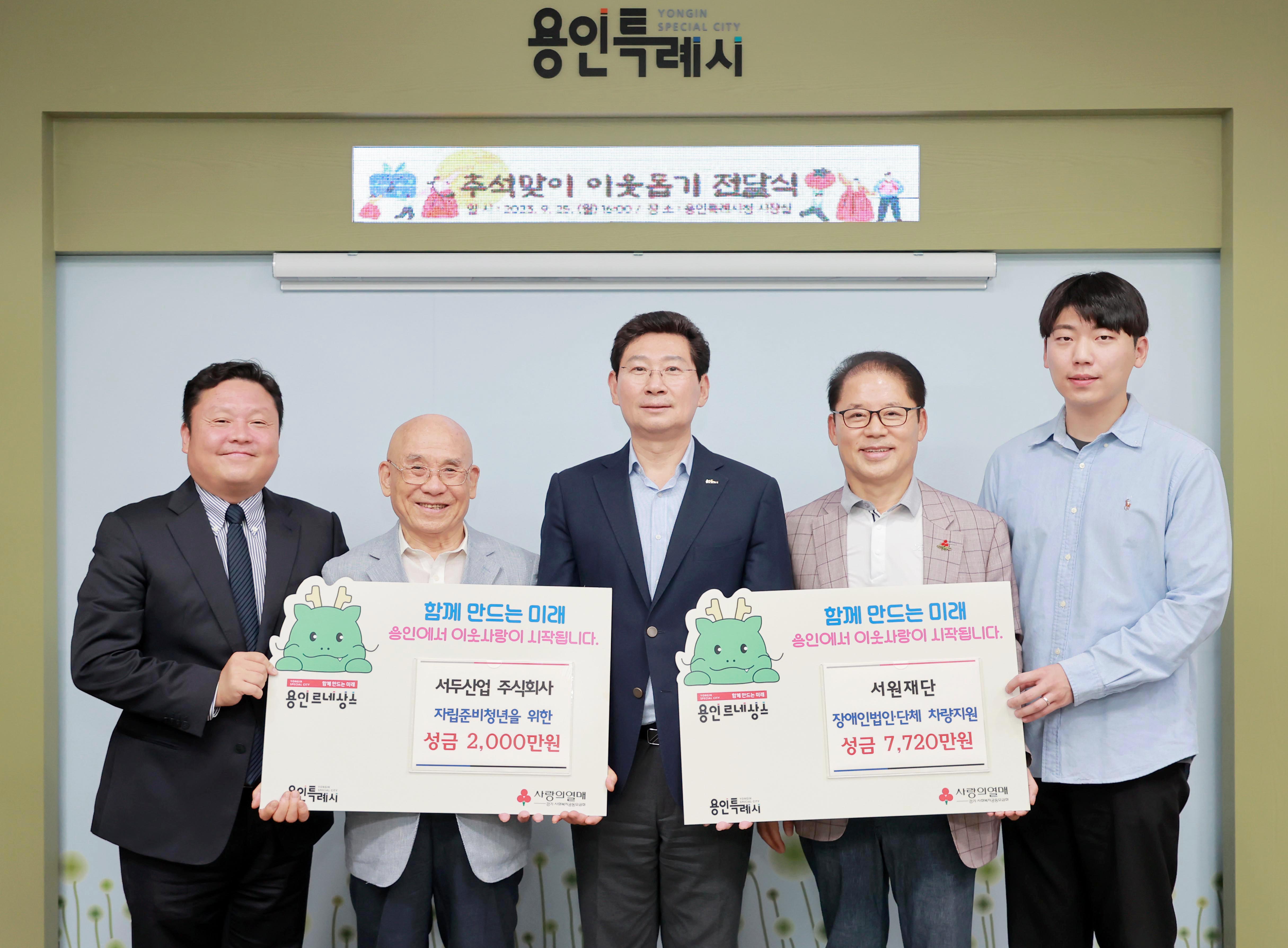 용인특례시(시장 이상일)는 추석 명절을 앞두고 취약계층을 돕는 데 써 달라며 지역 내 기업과 단체의 통 큰 나눔이 이어졌다고 25일 밝혔다.