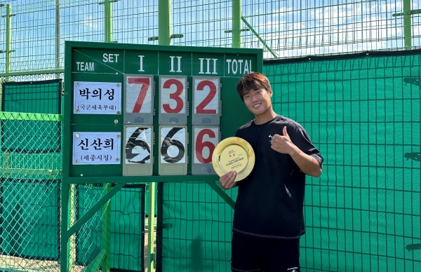 단식 국내랭킹 5위인 신산희 선수는 이 대회 단식 결승에서 국군체육부대 박의성 선수를 2대 1로 제압하면서 최정상에 올랐다.